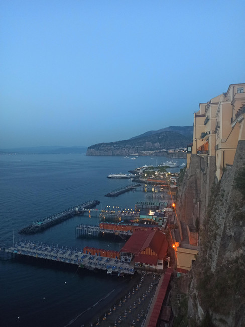 We had almost four hours time to spend, so we walked through the centre and narrow streets in the hills, and ended up at the beach for the rest of the afternoon. On our way back, the sun was setting down and we had amazing views of the lit up coastal towns, such as Sorrento!
